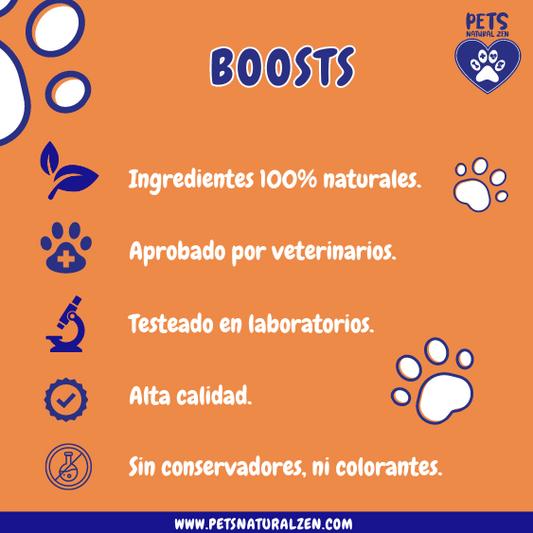 Nuestros Boosts están llenos de vitaminas y minerales para darles todo lo que necesitan nuestros perrhijos.
